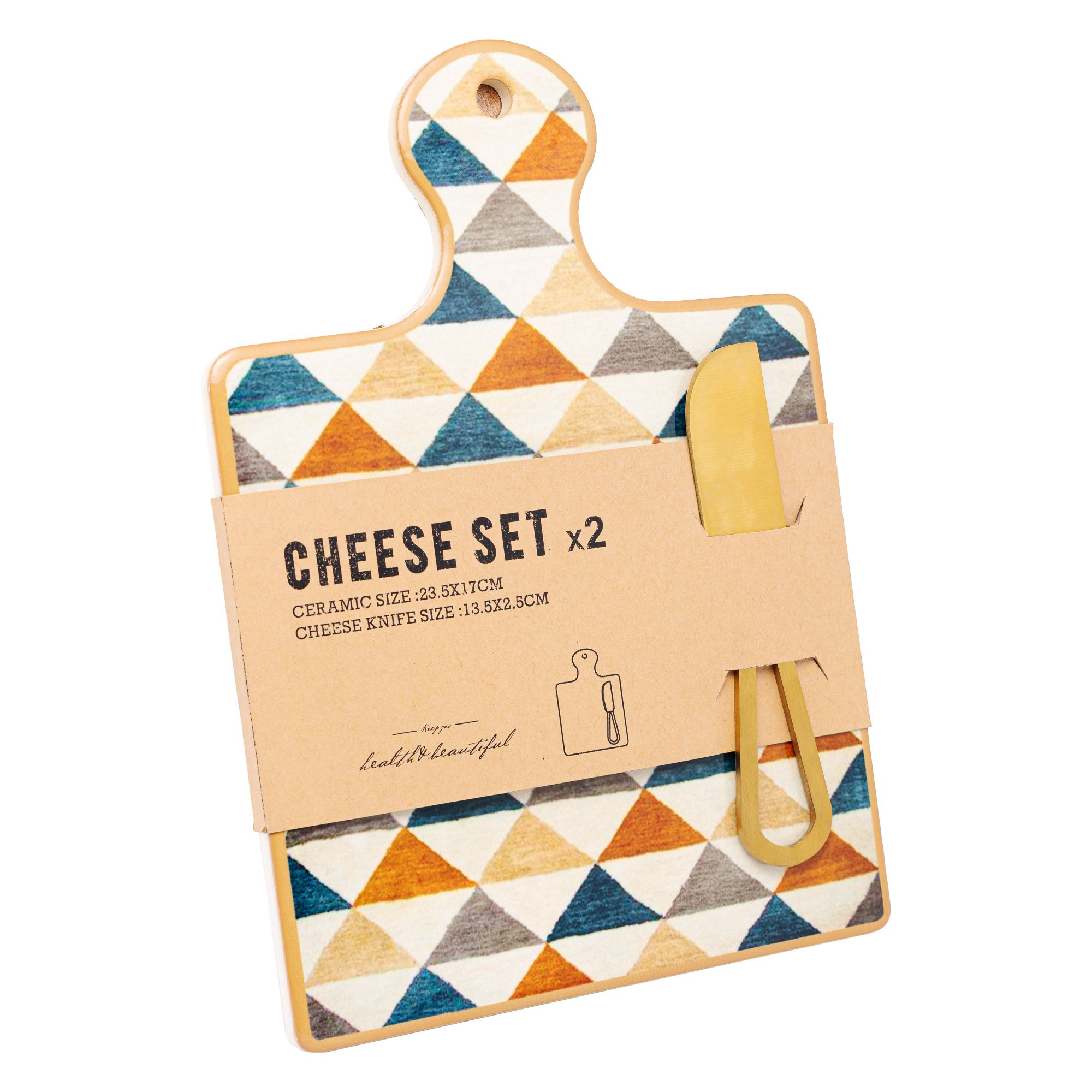 Conjunto 2 Peças para Servir de Cerâmica com Tábua e Faca Dourada 23,5cm x 17cm x 1,5cm - Lyor