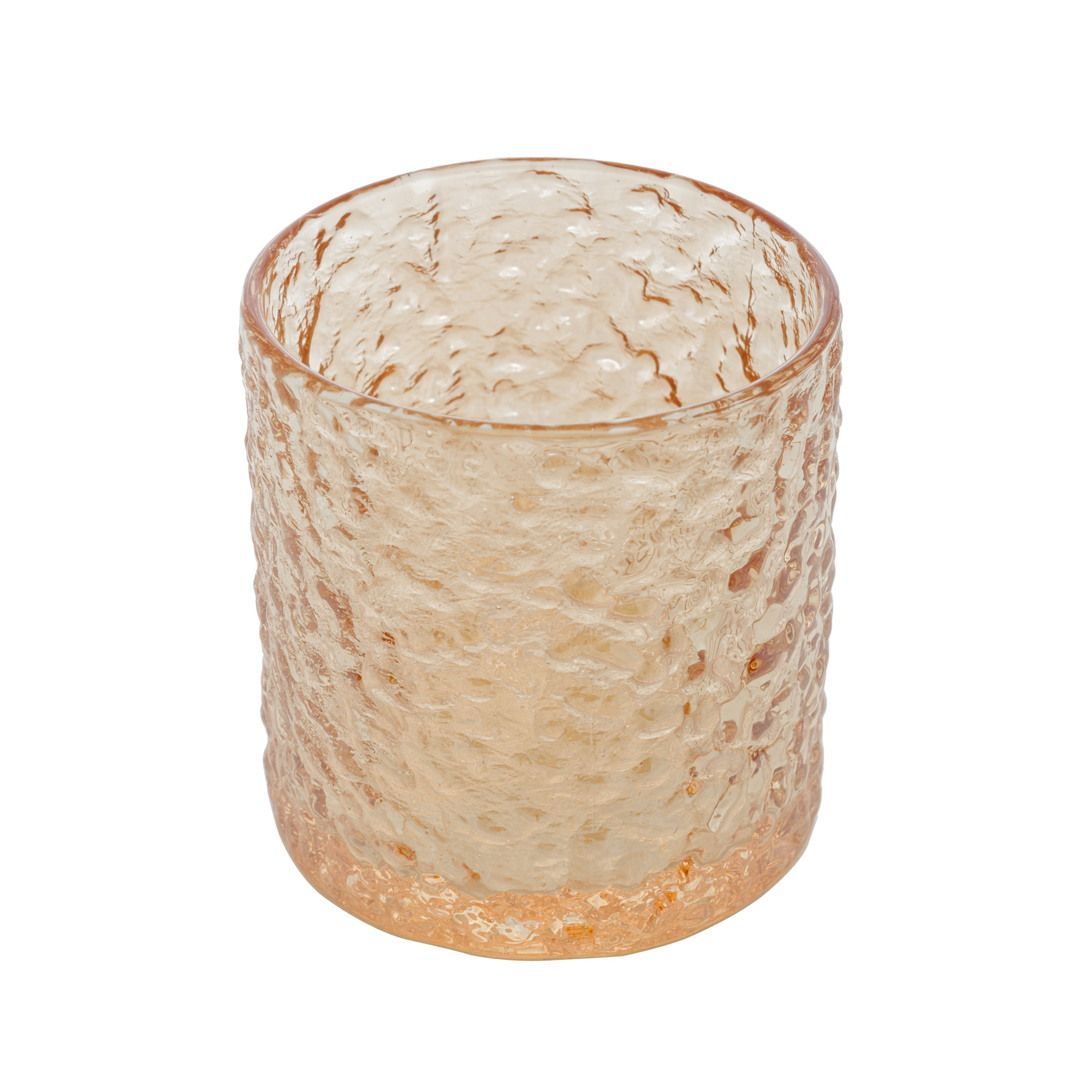 Design Distinto: O cristal martelado em âmbar confere ao copo uma aparência única e sofisticada, adicionando um toque de luxo à sua mesa.