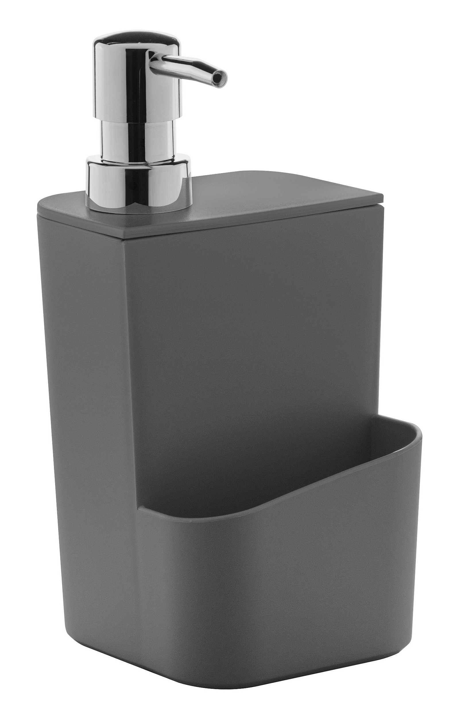 O dispenser possui válvula dosadora que permite dosagem do detergente gerando economia, e compartimento para esponja que é fechado, ou seja, o produto vai da pia direto para a gaveta ou armário sem escorrer água. Fabricado em material resistente e flexível (Polipropileno), além do plástico ser texturizado impedindo riscos e facilitando a higienização.