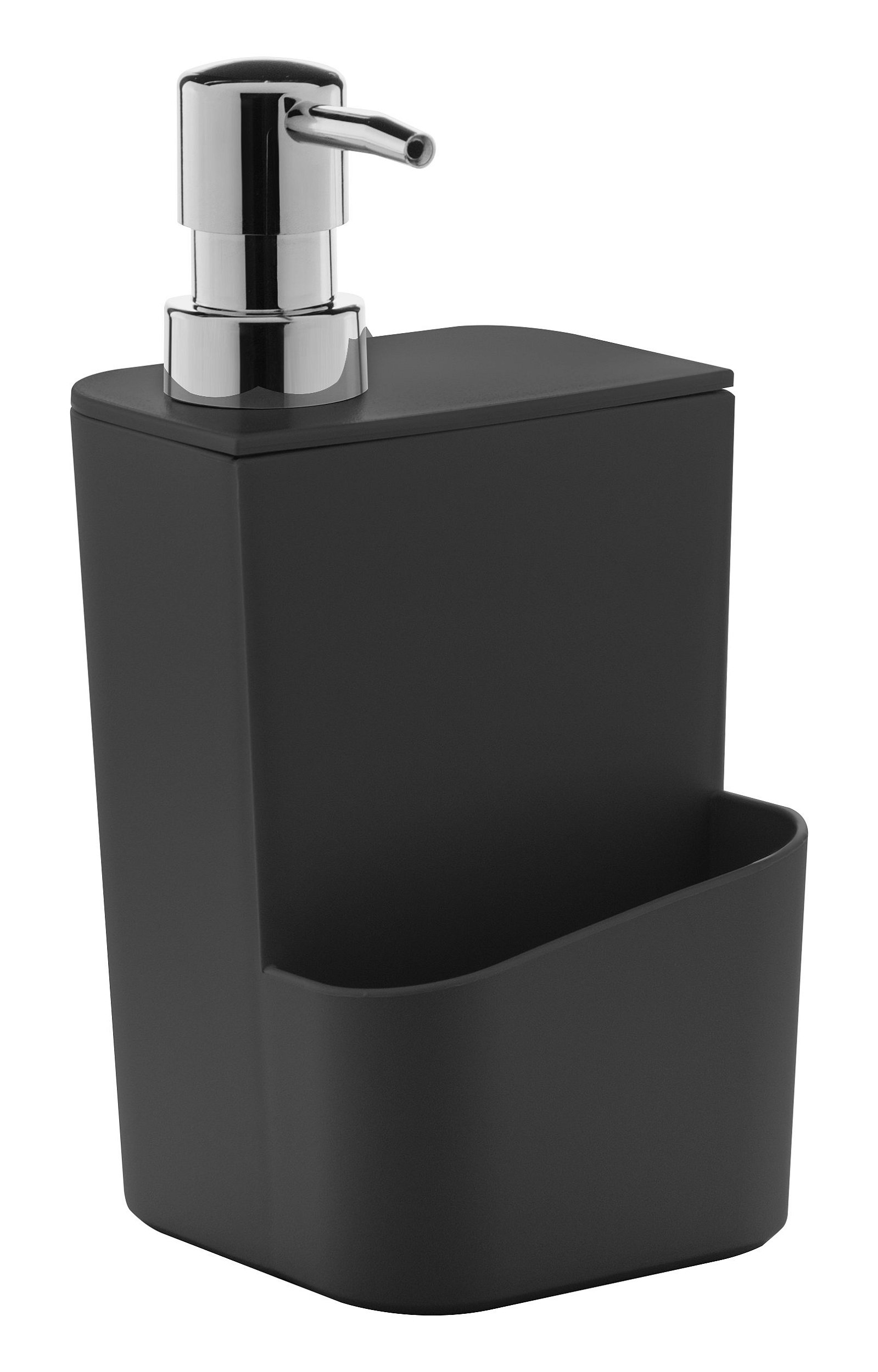 O dispenser possui válvula dosadora que permite dosagem do detergente gerando economia, e compartimento para esponja que é fechado, ou seja, o produto vai da pia direto para a gaveta ou armário sem escorrer água. Fabricado em material resistente e flexível (Polipropileno), além do plástico ser texturizado impedindo riscos e facilitando a higienização.