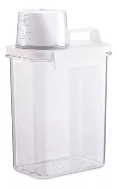 Armazene sabão em pó, líquido, amaciante, detergente e o que você quiser. VEDAÇÃO EXCELENTE! NÃO VAZA! Excelente também para mantimentos! Ele é suuuper multiuso, você pode utilizar na cozinha para colocar e medir grãos, temperos, aveia, açúcar, café e outros alimentos. Leve praticidade e modernidade para sua casa!