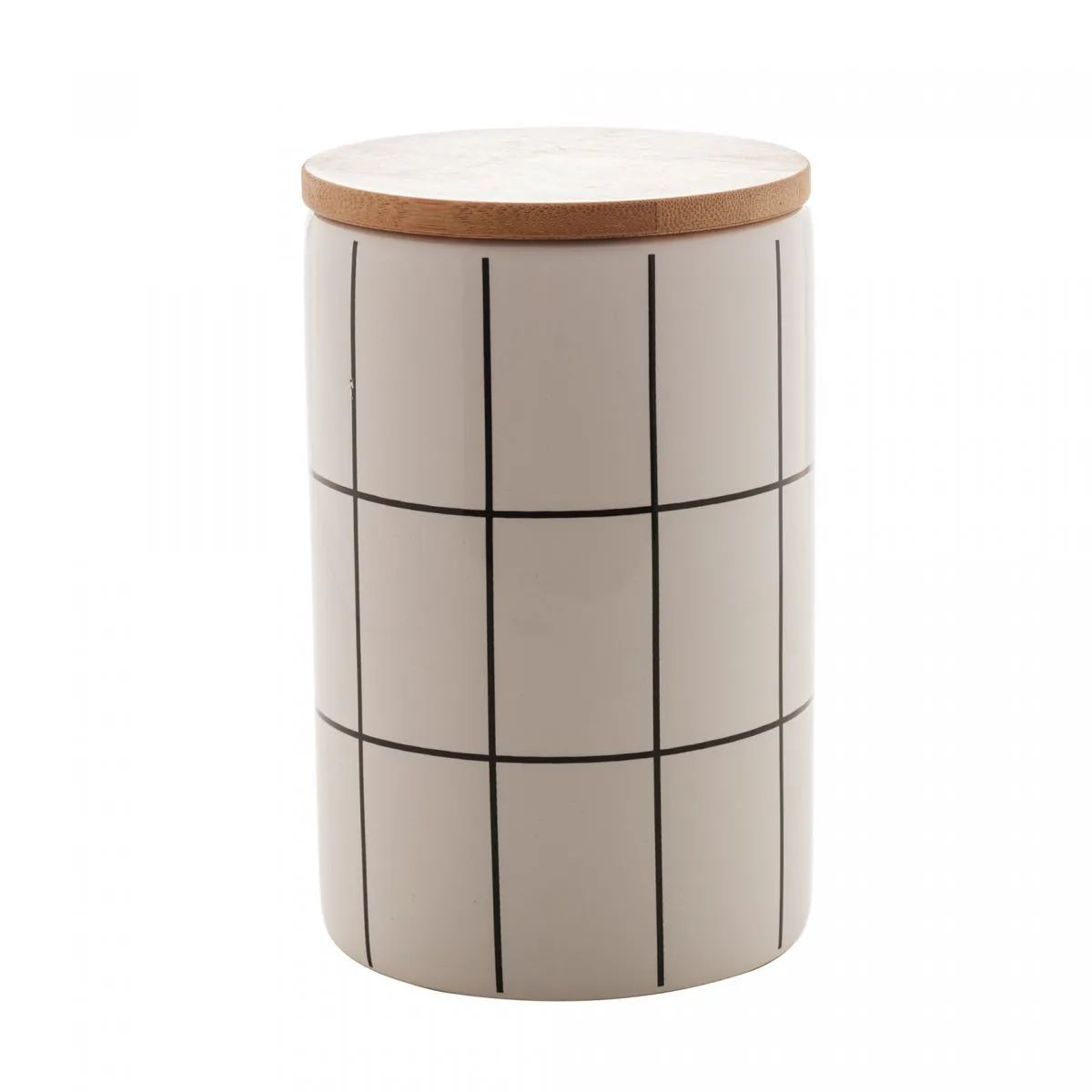 Tampa de Bambu com Detalhes em Branco: A tampa em bambu não apenas preserva a frescura dos alimentos, mas também possui detalhes em branco, adicionando um toque de sofisticação ao potiche.